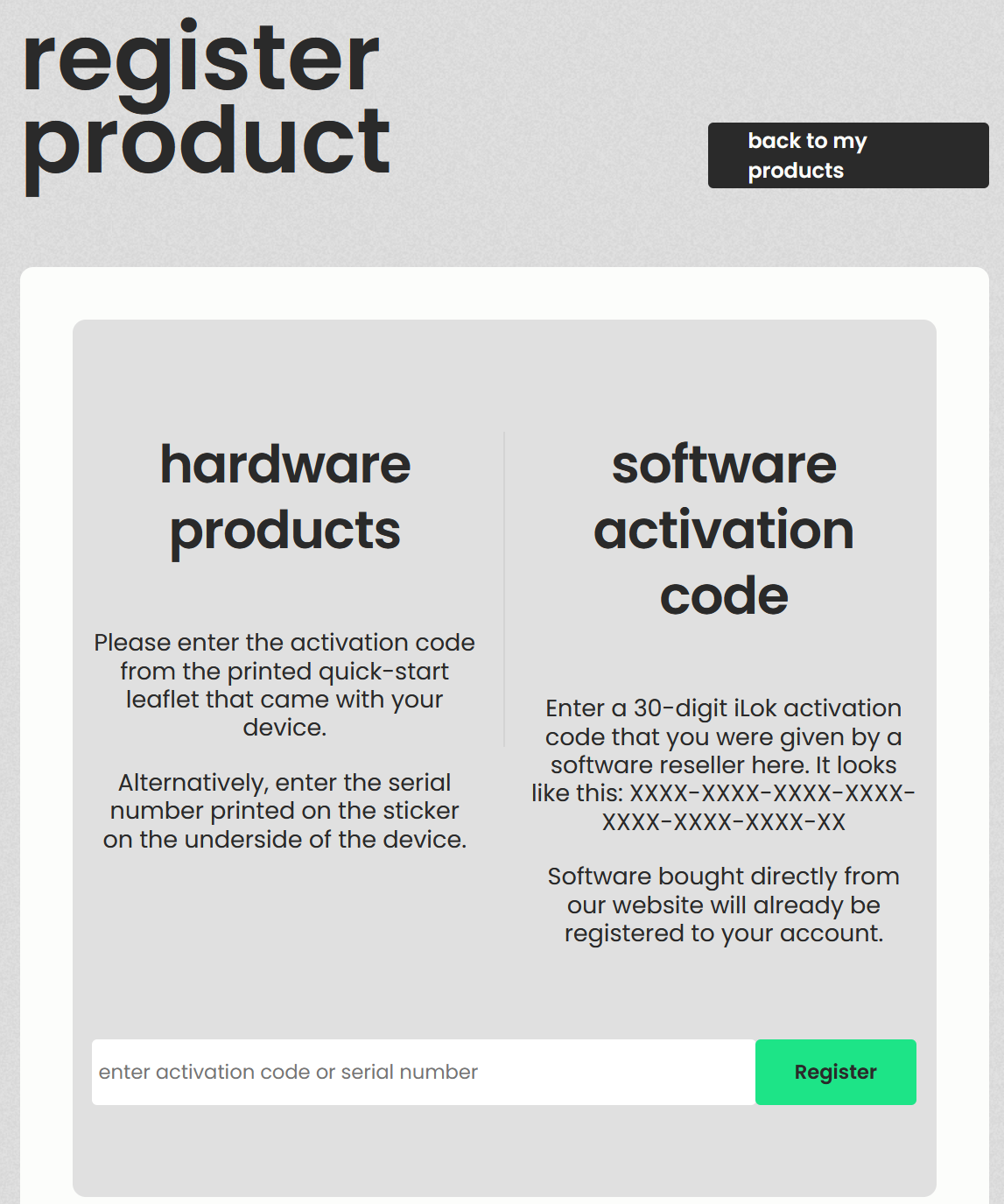 - Your product is now listed in the 'my products' section and you will find download links to all the included software content inside your customer account.