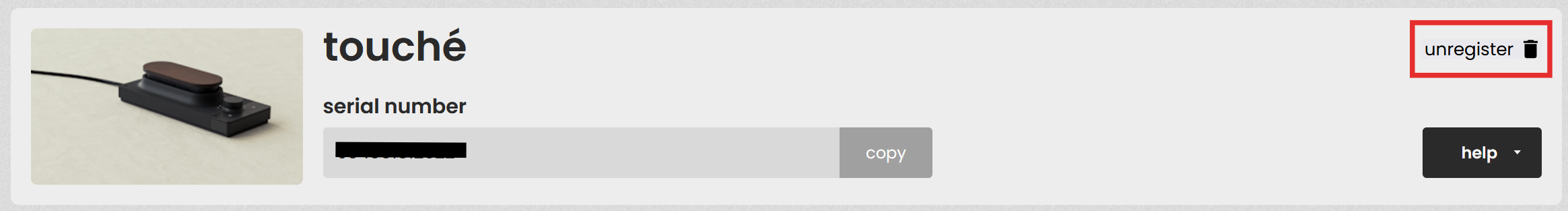 To ensure that the next owner of your Touché (SE) can register their device, please just click the 'unregister' button with the trash bin symbol next to the product in the 'my products' section of your Expressive E account. It will initialize the registration status.